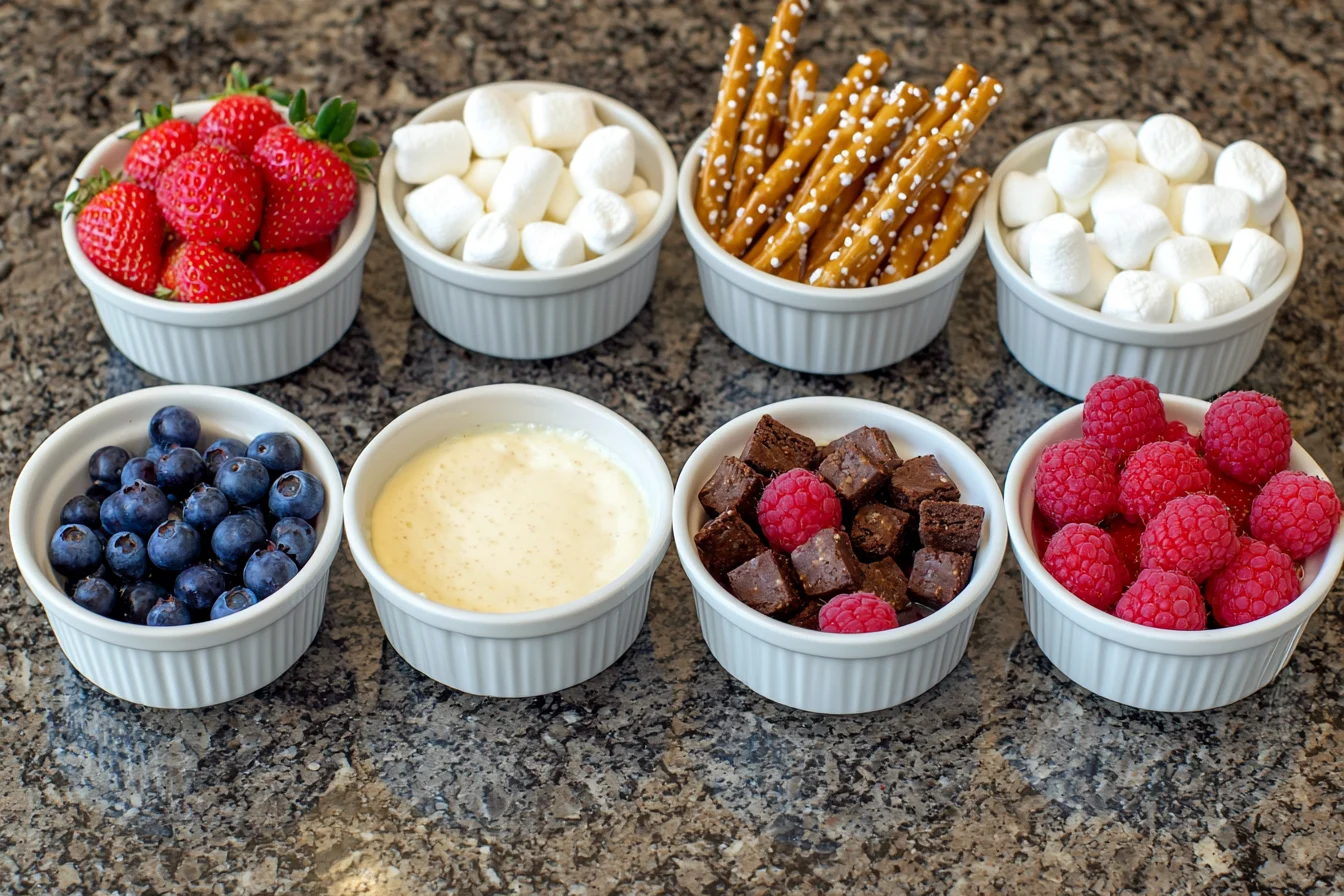 - Oreo Cheesecake Fondue: Crush Oreo cookies and mix them into the fondue for a cookies-and-cream flavor.
